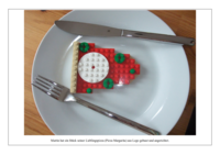 Martin hat ein Stück seiner Lieblingspizza (Pizza Margarita) aus Lego gebaut und angerichtet.